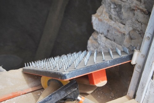 - Une autre de couler du béton de chaux dans le bas de mur qui a souffert de l'arrachage de vieux tuyau.